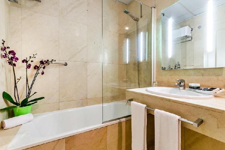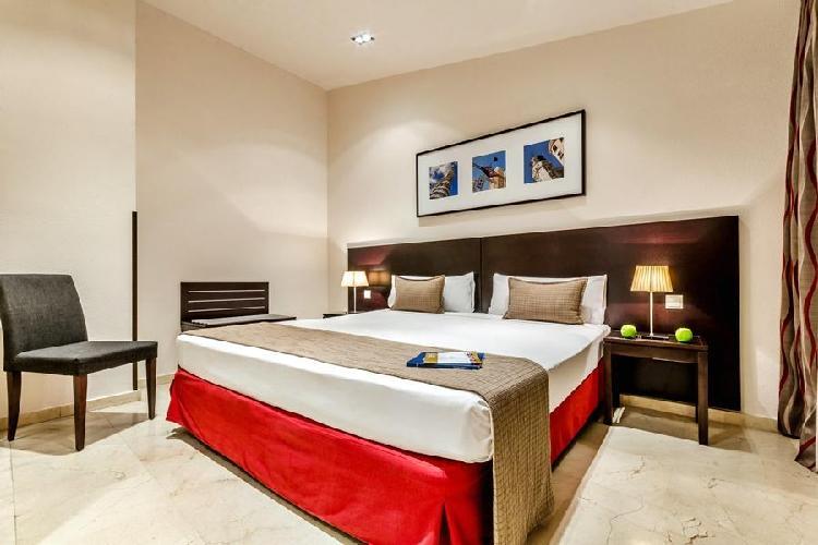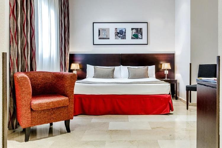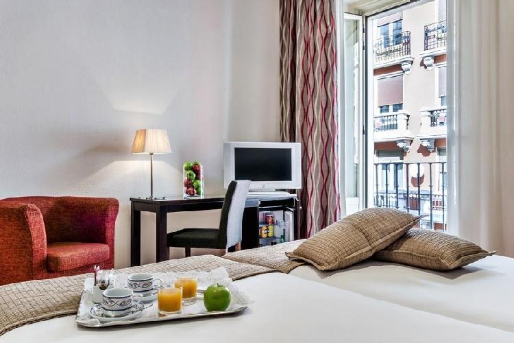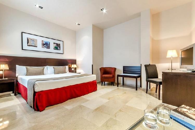 Habitaciones amplias y muy bien decoradas. Situación inmejorable, al lado de Gran Vía y a la vez muy tranquilo. La única pega es que no tiene cafetería y el desayuno se sirve en otro hotel de la misma cadena. Reserva con hotelius rápida y cómoda. El pago en el hotel sin problemas. - Anónimo
