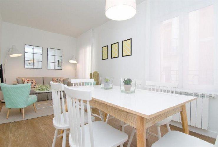 Licence number: VT-1472 Located in La Latina, one of the liveliest neighbourhoods in Madrid. Its streets are full of charming restaurants offering all kinds of high-quality cuisine, from traditional Spanish fare to creative modern dishes. It is packed with tourist sights, including the Palacio Real, Catedral de la Almudena, Plaza Mayor, Puerta del Sol (whose famous clock rings in the New Year), as well as lots of museums (Museo Reina Sofía, Museo del Prado, Museo Thyssen-Bornemisza), cinemas and theatres, just part of the city's extensive cultural offer. The apartment: This magnificent apartment is in a 1950s building that has been fully renovated to combine original features with modern touches. Each apartment has central air conditioning and magnetic keys grant access to the building and the apartment and control the power supply, one of the building's environmentally friendly features. You'll be bowled over by the superb communal roof terrace, where you can relax or dine al fresco as you take in the stunning views over the city-a rare treat in the centre of Madrid! The NoMad 2 apartment is a modern 93 m2 three-bedroom apartment that can comfortably sleep seven. The main bedroom has a double bed; another bedroom has two single beds; and the remaining bedroom has a single bed. There are hard-wearing porcelains floors throughout and air conditioning in every room. There are two bathrooms, both with built-in showers and clad with colourful cement tiles to give them a classic air that sets off the modern touches. In the living-dining room there is a table that seats six and a double sofa bed. The kitchen is equipped with all the appliances you'll need for a perfect stay (fridge, oven, microwave, washing machine, dishwasher and glass-ceramic hob). This great apartment has use of the communal roof terrace on the top floor..all guests are welcome to use it... Restrictions: No Parties No Pets For check-ins after 21:00 until 02:00 an additional cost of 30 euros will be applied. This charge can vary depending on the city and currency. Number of beds: 0